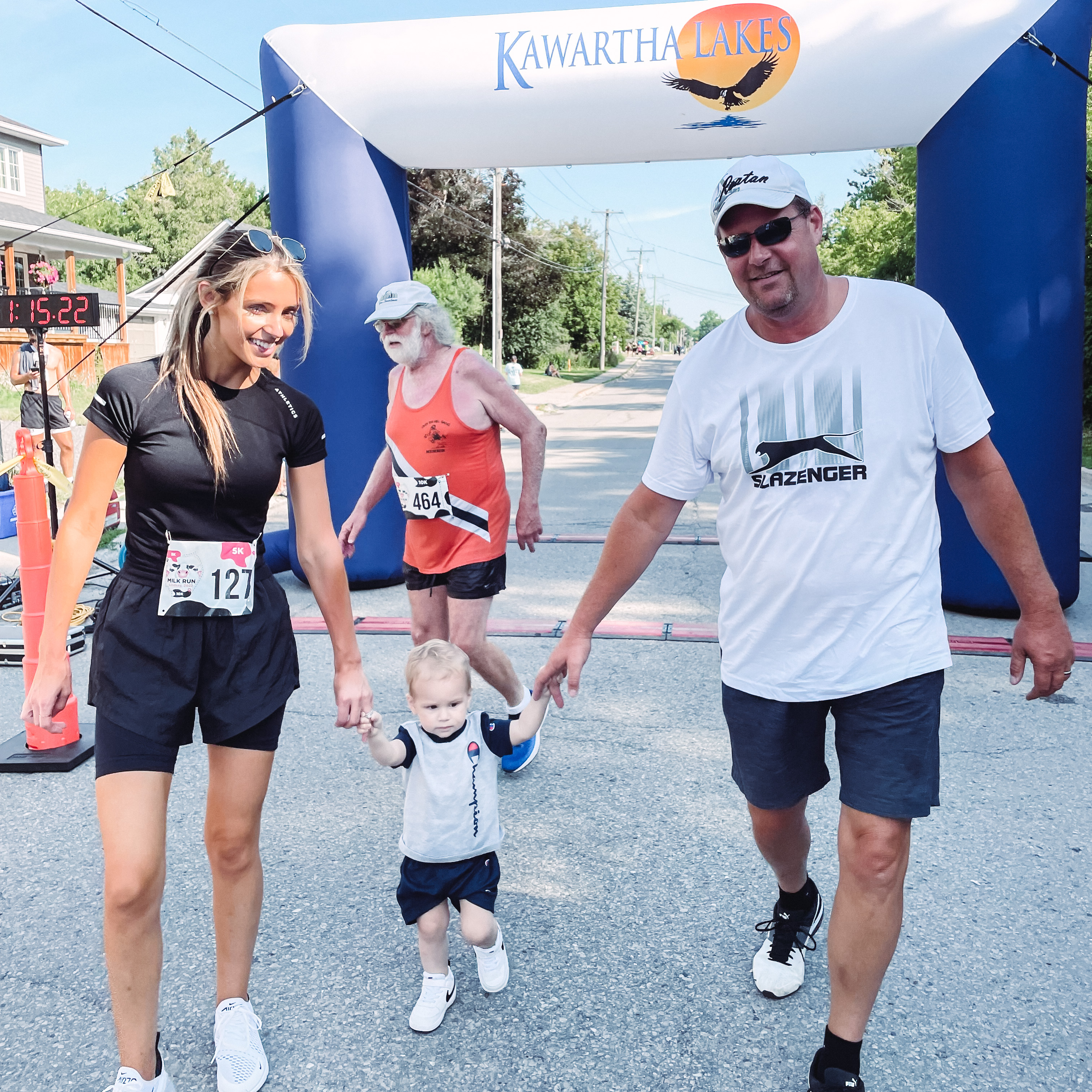 This morning was perfect because its July and the weather is hot, but the early morning was great for exercise. We completed the 5 kilometers with our little one in the Graco Jogging Stroller, which was ideal for such a run. The wheels are large and made for this type of activity, our son was able to snack using the tray attachment, and recline back to relax and nap comfortably. We crossed the finish line with our toddler walking across proudly, and drank chocolate milk curtesy of Fairlife and the Kawartha Dairy.