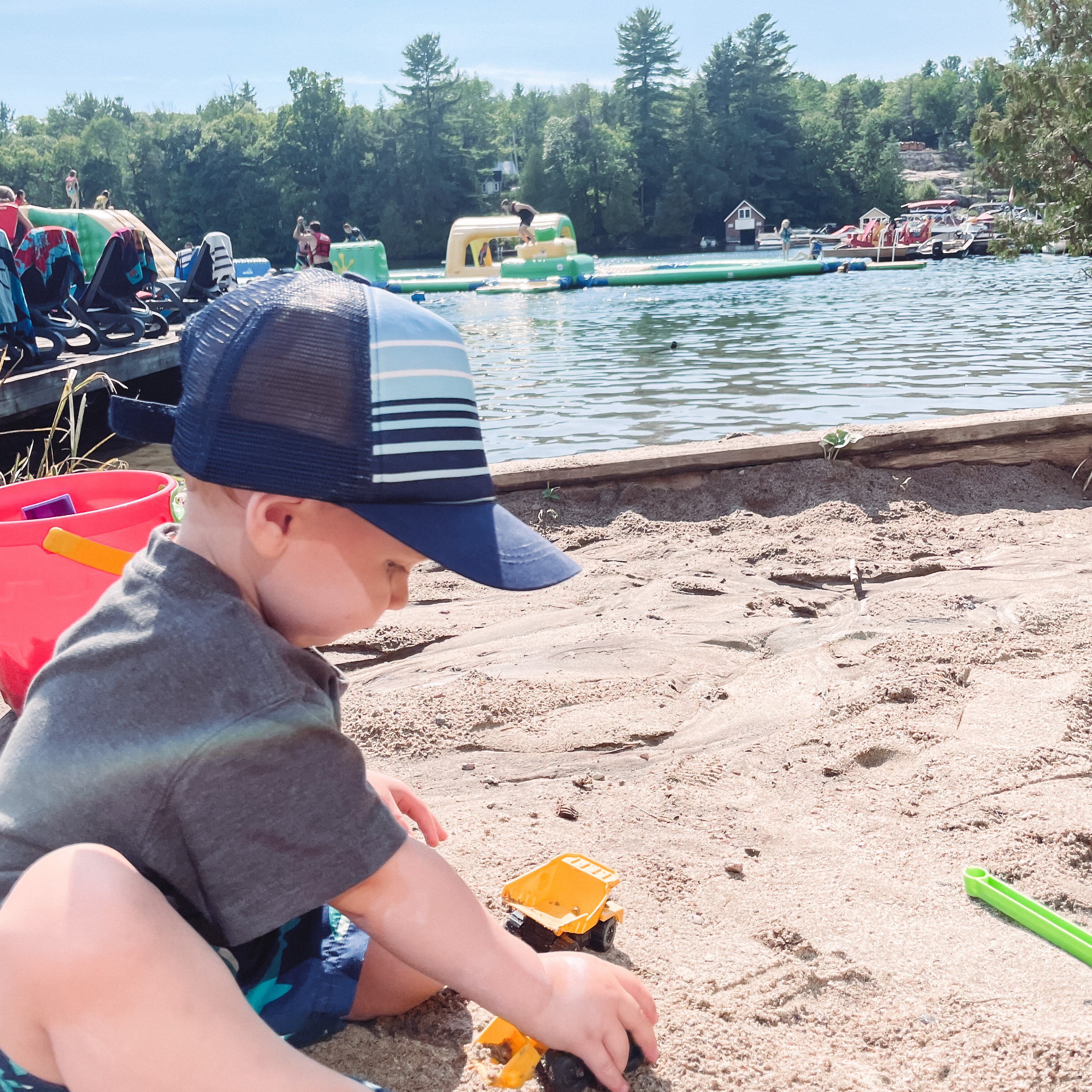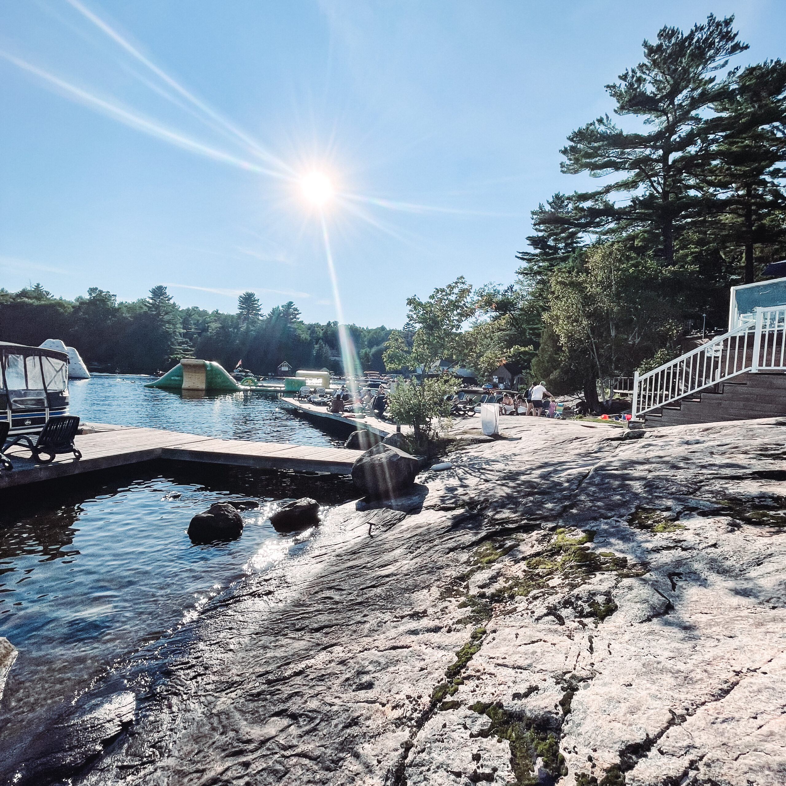 Lake Joseph: Rocky Crest is perched along the outcrops of the Canadian Shield, located in Hammer Bay on beautiful Lake Joseph in Muskoka. When looking at the photos before arriving here I honestly thought there wasn’t much of a beach area, but this resort truly exceeded my expectations with its outstanding waterfront. This resort was full of soft sand all along the shore, the beach was great with a play area for our toddler and we enjoyed wading in some of the most clear lake water I’ve ever seen.